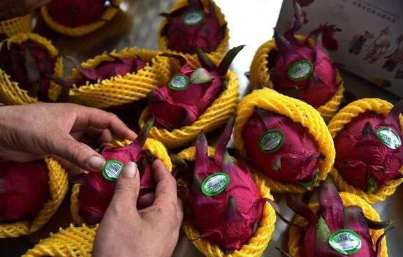 在西充縣中嶺鄉(xiāng)樓子寺村一家生態(tài)農業(yè)園的火龍果大棚旁,工作人員正為即將發(fā)往成都、重慶等地的火龍果做最后一項工作——開具合格證。不過這張合格證和以前不大一樣,上面多了一個二維碼。“掃描這個二維碼,就能實現農產品溯源,這功能是最近剛用上的。”工作人員一邊說一邊將二維碼合格證貼在了火龍果上。